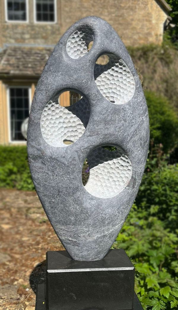Marks sculptures are a playful investigation into line, definition and geometry. Working with negative space, light and shadow, Mark gives each of his sculptures direction and flow. Lines direct the form, textures are contrasted and complemented, and shapes are contorted into new, enticing arrangements. Yet each design maintains a sense of Mark’s own, free hand carving, allowing his works to develop in an open and instinctive manner’ Mark Stonestreet is an abstract stone sculptor of over 20 years, based in the United Kingdom, known for his captivating and thought-provoking creations. With a passion for transforming raw stone into exquisite works of art, Marks’s sculptures are characterised by their abstract forms, harmonious lines and their contrast and texture.